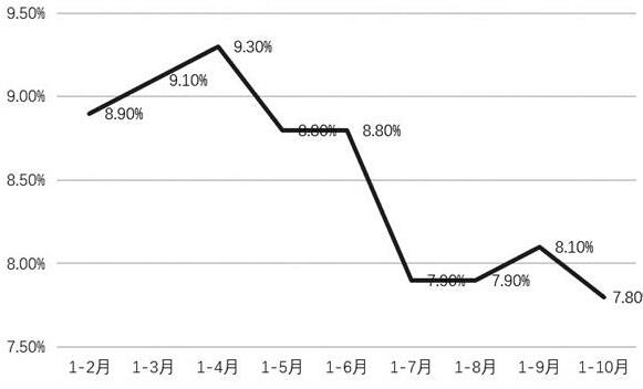 圖為房地產(chǎn)開發(fā)投資增速累計值