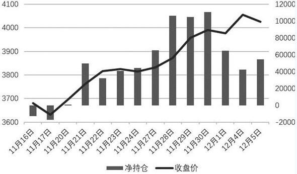 圖為螺紋鋼1805合約前二十名凈持倉與收盤價對比