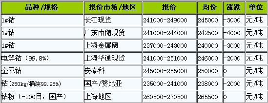 6月24日國(guó)內(nèi)金屬鈷價(jià)報(bào)價(jià)下跌,國(guó)內(nèi)鈷市行情震蕩下跌,國(guó)際鈷價(jià)下跌,國(guó)內(nèi)鈷市利空較大,鈷市需求一般,客戶(hù)采購(gòu)積極性一般,需求一般,總體后市鈷市利空加大利好仍存。全球手機(jī)銷(xiāo)量整體下滑,新能源汽車(chē)銷(xiāo)售緩慢回暖,鈷礦陸續(xù)到港,鈷原料增加,鈷市供給風(fēng)險(xiǎn)減弱,利空加大。短期鈷市行情震蕩下跌,鈷市上漲動(dòng)力不足。