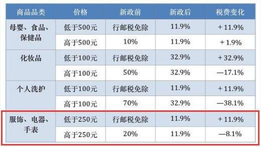 與之前相比,跨境電商將按照貨物征收關稅,按進口環(huán)節(jié)征收增值稅、消費稅。稅額暫按法定應納稅額的70%征收,同時取消免征稅額(原來有50元以下免征稅額),意味著跨境電商免稅時代終結。而海淘一件商品,最低交稅11.9%。