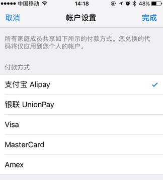 目前,中國(guó)大陸用戶已經(jīng)能在App Store的付款方式和充值兩個(gè)地方看到支付寶的加入,可以用于購(gòu)買應(yīng)用,給賬戶充值,或給Apple MusIC等訂閱服務(wù)付費(fèi)等。