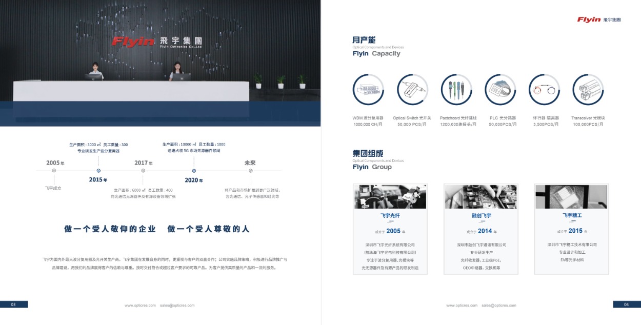 深圳市飛宇光纖系統(tǒng)有限公司(飛宇集團(tuán)),成立于2005年,位于深圳龍華,占地面積10000平方米,擁有750多名員工,是一家集研發(fā)、生產(chǎn)、銷售為一體的國(guó)家級(jí)高新技術(shù)企業(yè)。其生產(chǎn)的光通信產(chǎn)品包括WDM波分復(fù)用器/光模塊/PLC/環(huán)形器/光開(kāi)關(guān)等。在此期間,我們還實(shí)施了品牌戰(zhàn)略,滲透到我們的目標(biāo)市場(chǎng)。公司已通過(guò)ISO9001:2015質(zhì)量管理體系認(rèn)證和IS