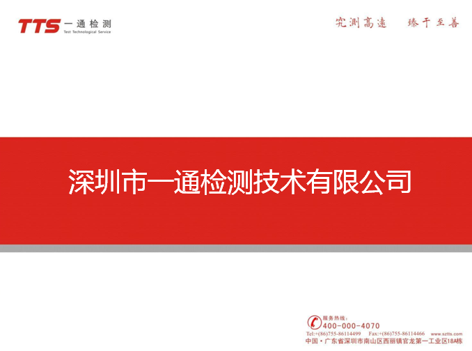 一通檢測使命——提供優(yōu)質(zhì)的檢測服務(wù)和質(zhì)量解決方案,幫助客戶實(shí)現(xiàn)產(chǎn)品價值的持續(xù)提升 深圳市一通檢測技術(shù)有限公司(簡稱TTS)成立于2005年,是具有CMA、CNAS認(rèn)可資質(zhì)的第三方專業(yè)檢測機(jī)構(gòu),在工業(yè)消費(fèi)品包裝以及包裝運(yùn)輸檢測領(lǐng)域處于行業(yè)領(lǐng)先地位。一通檢測客戶遍及計算機(jī)通信、電子器件、機(jī)械設(shè)備、家電電器、包裝運(yùn)輸