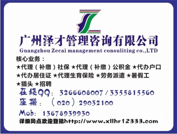 廣州澤才管理咨詢有限公司,注冊(cè)資金200萬,成立以來得到相關(guān)部門機(jī)構(gòu)和社會(huì)各界人士大力扶持,經(jīng)廣州市市工商注冊(cè)成立的正規(guī)合法社保公積金代理機(jī)構(gòu),擁有最新(買房、生育、讀書、入戶、申請(qǐng)其它)社保、公積金信息政策優(yōu)勢(shì),是一家專業(yè)從事社保代理(補(bǔ)繳)、生育保險(xiǎn)報(bào)銷、住房公積金代繳(補(bǔ)交)、居住證、入戶的企業(yè)管理機(jī)構(gòu)。