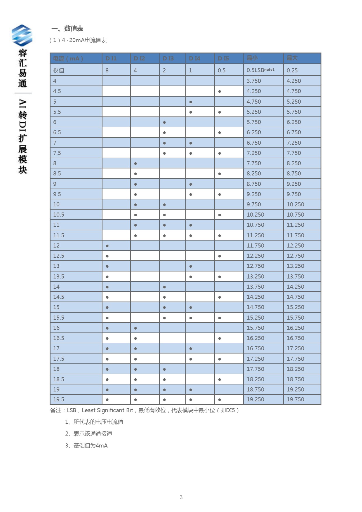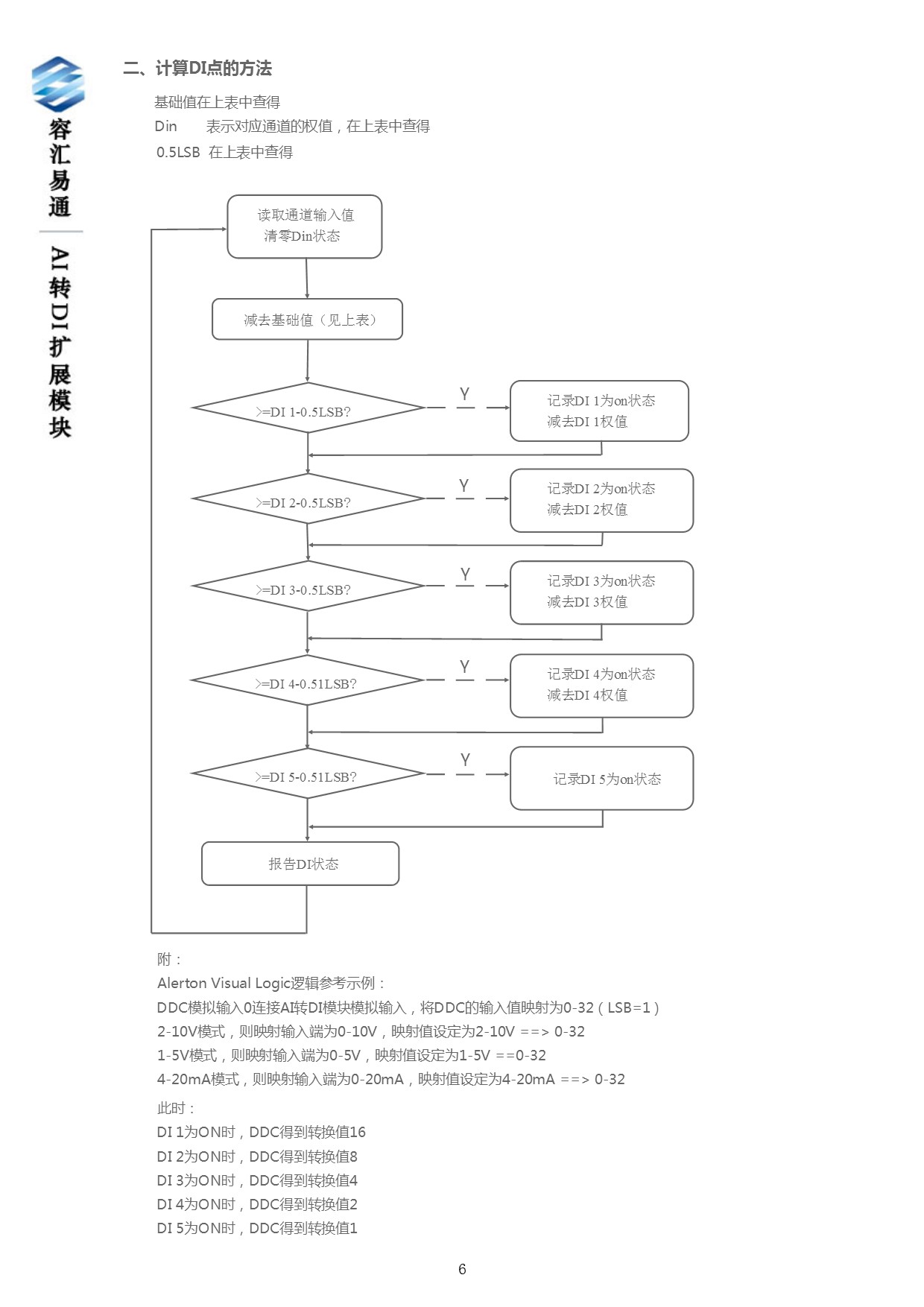 原理: 將五路di輸入轉換成電流或電壓信號輸出,用電流變化來確定對應的數字量輸入的狀態(tài)(電流范圍0~19.375ma)。