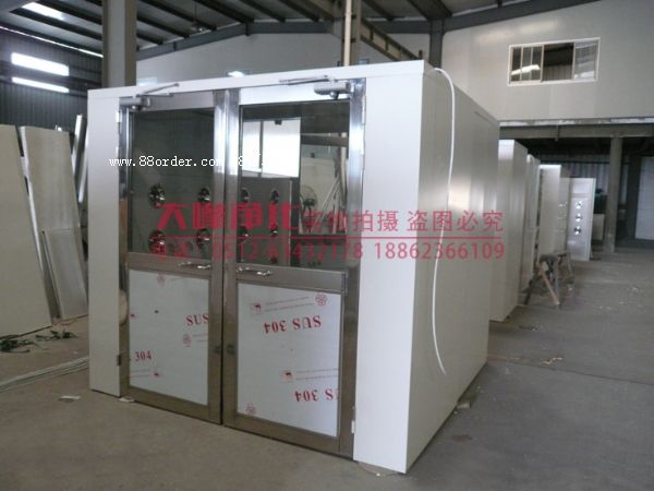 這是一種通用性較強的局部凈化設(shè)備,安裝于潔凈室與非潔凈室之間的隔墻處,用于人員或物品進入潔凈區(qū)時的吹淋。使用后可有效地減少塵源進入潔凈區(qū),使?jié)崈魠^(qū)保持正常的工作狀態(tài)。