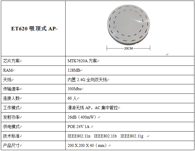 et620n入墻式ap技術(shù)參數(shù)
