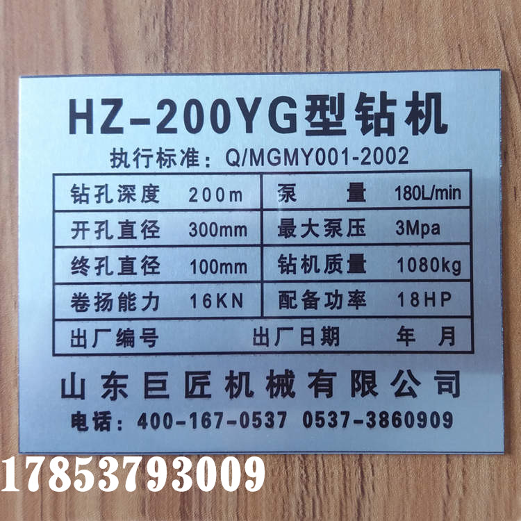 外型尺寸長mm2700寬mm950高mm1770結(jié)構(gòu)質(zhì)量kg1180鉆孔深度m200鉆孔直徑mmφ230-φ350鉆桿主動鉆桿mm53×59×4200鉆桿mmφ50×5.5鉆桿抗拉強度mpa640鉆頭mmφ75-φ300鉆盤卡盤形式手動式滾珠夾持卡盤轉(zhuǎn)速r/min48、208、476、1025鉆盤扭矩kn.m3.2給進行程mm450油缸給進力kn25油缸上頂力kn35卷揚機卷筒直徑mmφ140單繩提升速度m/s0.23、0.45、0.96、1.94單繩提升力kn24鋼絲繩容量m35鋼絲繩規(guī)格mmφ13鉆塔鉆塔型式龍門架額定負(fù)荷t5有效高度m6.8塔腿規(guī)格mmφ89水龍頭提升力kn50承載壓力mpa2配套膠管直徑mmφ50配套泥漿泵型式臥式單缸雙作用往復(fù)活塞泵排量l/min160工作壓力mpa2輸出壓力mpa2油泵油泵型號cbn-f320額定壓力mpa20額定轉(zhuǎn)速r/min2500排量ml/r20配套動力柴油機kw16.2r/min2200鉆機移動速度km/h≤15山東巨匠機械有限公司專業(yè)生產(chǎn)液壓回轉(zhuǎn)式水井鉆機/地質(zhì)勘探鉆機,主要型號有:hz-130y、hz-130yy、hz-180yg、hz-180yy、hz-200y、hz-200yy、hz-200yg、hz-200gt。
