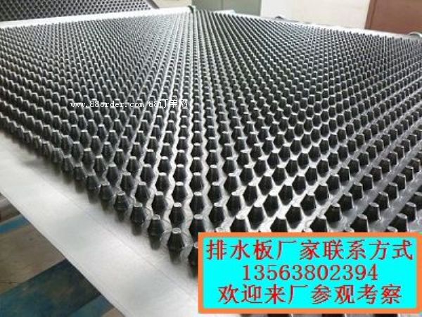 排水板的型號:08mm、12mm、16m、20mm、25mm、30mm、40mm、50mm、60mm厚排水板, 規(guī)格可以根據(jù)客戶的要求定制.