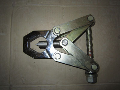 3.壓動(dòng)手動(dòng)油泵,使刀頭頂出推進(jìn)至螺母,注意在刀頭沒有頂?shù)铰菽钢,壓力表顯示為零,劈入螺母后指針開始上升,當(dāng)?shù)额^劈入螺母二分之一時(shí),須小心地壓動(dòng)手動(dòng)油泵,以免用力過猛,劈快速將螺母劈開損傷螺栓絲扣。