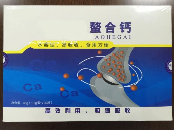 螯合鈣是生物活性有機(jī)鈣,比重為0.12,經(jīng)過美國弗吉尼亞大學(xué)和香港科技大學(xué)檢測鑒定為分子型鈣源!螯合鈣的高吸收率是傳統(tǒng)鈣劑的3倍!由于傳統(tǒng)鈣含有無機(jī)鈣,而無機(jī)鈣只有通過維生素d才能促進(jìn)鈣與蛋白酶結(jié)合,因此其它鈣產(chǎn)品都需要添加維生素d。而螯合鈣是氨基酸和鈣的完全螯合物,故無需添加任何促進(jìn)鈣吸收的物質(zhì)就可被人體直接吸收。