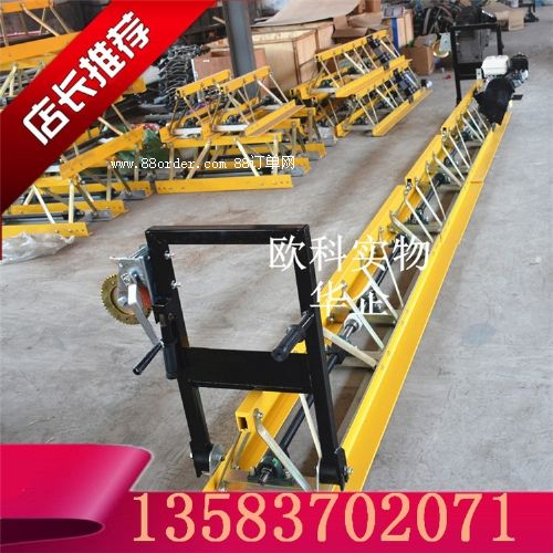 4. 客戶訂購整平機時,應(yīng)選擇比他實際施工寬度多出0.5米的設(shè)備,方便支模(一般是兩邊架槽鋼,擔(dān)住整平機的兩頭進行施工)