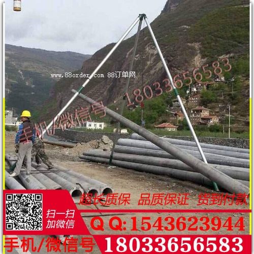 4、三角架立起后應(yīng)保證三桿頭部連接處與線桿坑底部垂直。