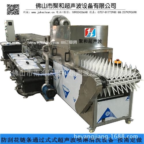 佛山聚和牌jh-tgs-l7m防刮花鏈?zhǔn)讲讳P鋼彎頭直通三通等管路配件除油超聲波噴淋清洗設(shè)備