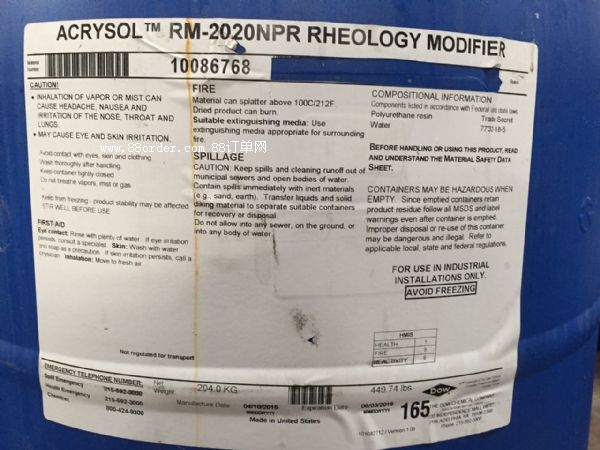 羅門(mén)哈斯亞樂(lè)順acrysol? rm-2020是一種聚氨酯類(lèi)、疏水基團(tuán)改性的非離子型締合式增稠、流平雙功效產(chǎn)品。他不含【敏感詞】國(guó)人都懂的、不含有機(jī)錫類(lèi)化合物,是一種無(wú)毒、無(wú)味、環(huán)保型流變改性助劑。