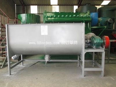 我廠研究開發(fā)的臥式雙軸攪拌機,在入口處令加一飛刀作用,使混合物料的均勻度更高,更快!