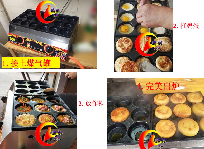 商用加大12孔燃?xì)鉂h堡機(jī)|中式雞蛋漢堡爐|漢堡雞蛋餅機(jī)|地?cái)傠u蛋漢堡做法