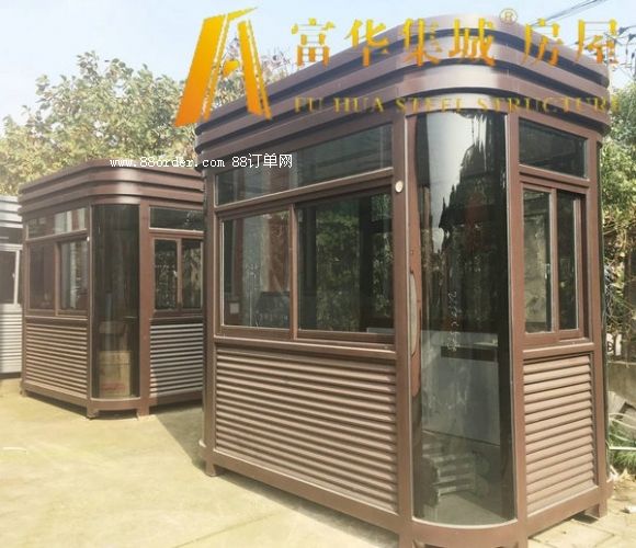 富華集城品牌歐式崗?fù)げ馁|(zhì)表面經(jīng)特殊工藝加工處理,精工制作而成,款型別致,品種繁多,不僅美觀大方、穩(wěn)固耐用,而且適用于物業(yè)、治安、交通監(jiān)控等多方面領(lǐng)域。富華集城品牌崗?fù)ぶ黝}骨架采用優(yōu)質(zhì)不銹鋼整體焊接而成,強(qiáng)度高、抗風(fēng)壓。 然后,崗?fù)ろ敳坎捎锰厥夥浪q接工藝,杜絕了漏水之患。崗?fù)?nèi)預(yù)留有空調(diào)機(jī)其他電器電源插座,方便保安人員使用。