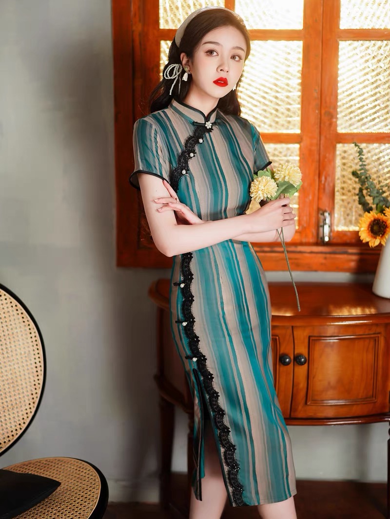 經(jīng)典國(guó)風(fēng)少女風(fēng)真絲旗袍瀟萍萍撤柜尾貨貨源供應(yīng)