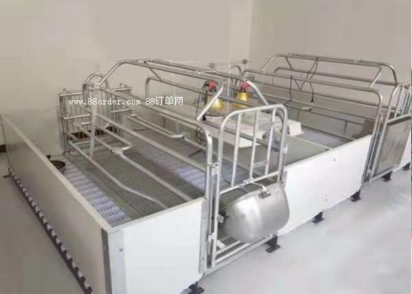 母豬產(chǎn)床,主體采用熱浸鋅管或噴漆管焊接,使其結構 合理,經(jīng)濟實惠,質量和壽命大幅提高,成為各大規(guī)模化養(yǎng)豬廠的 ,仔豬塑料地板,母豬球墨鑄鐵地板,扁鋼大梁支撐。含母豬食槽,仔豬圓形補料槽,保溫箱,電熱板。