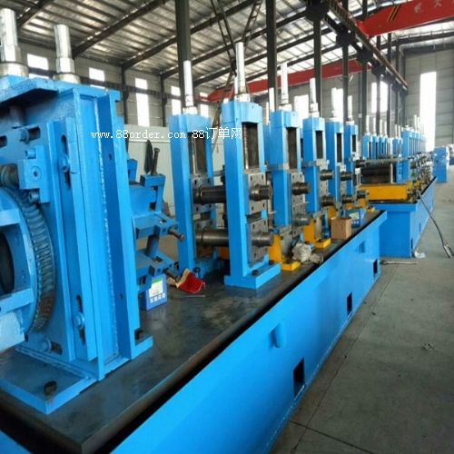 以帶鋼為原料,經(jīng)開卷、成型、高頻焊接、解決焊瘤、定徑、校直、切斷等一系列制管工序制造出圓鋼管或各樣式一行鋼管的成套設(shè)備。采用輥式成型將帶鋼冷彎加工成圓坯,通過高頻感應(yīng)加熱將焊縫擠壓形成圓管,在經(jīng)過定徑加工生產(chǎn)出各樣式標(biāo)準(zhǔn)規(guī)格的圓管、方矩形管。
