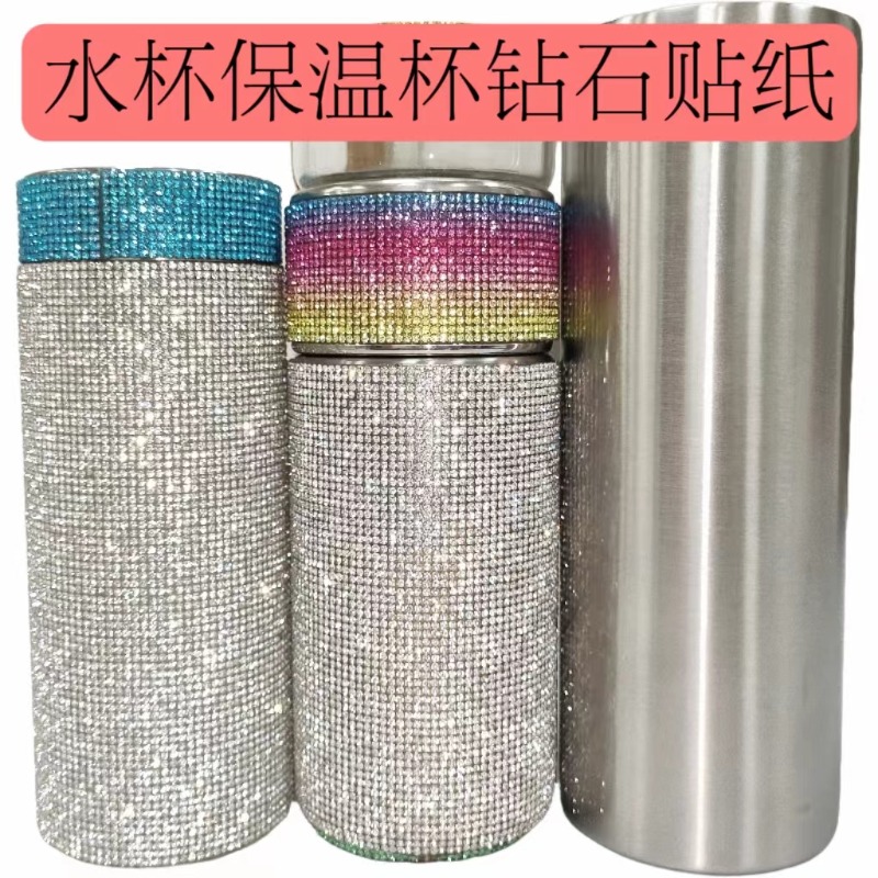 保溫杯鉆石貼紙保溫杯貼鉆工廠不銹鋼吸管杯貼鉆咖啡杯禮品杯鑲鉆