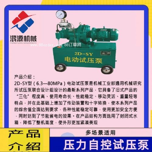 2d-sy型(6.3—80mpa)電動試壓泵,主要使用于各類壓力容器、氧氣瓶、管道、閥門、蒸氣鍋爐等作水壓試驗,予應力加工新工藝和試驗室中獲得液體高壓源的設(shè)備。