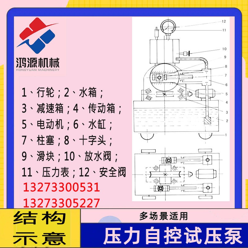 該產(chǎn)品為臥式2缸往復泵。由電動機、減速箱、傳動箱、水缸、集水器、安全閥及水箱等主要部件組成。