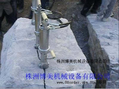 花崗石礦山的開采:花崗石礦山機械化開采難度相對較大。近幾年主要以株洲市博美機械有限公司生產的液壓分裂機開采為主,進行花崗石的開采,此種設備主要由泵站和分裂器兩大部分組成,由泵站輸出的高壓油,驅動油缸,產生巨大推力,驅動楔塊組中的中間楔塊向前駛出,將反向楔塊向兩邊撐開。
