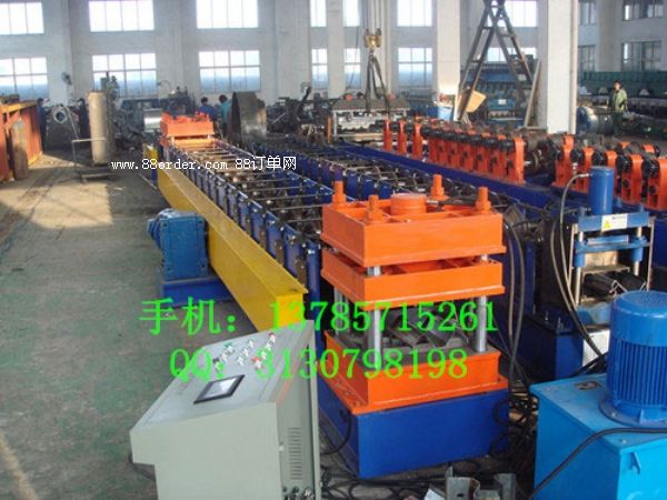 高速護(hù)欄機(jī)主要由開卷機(jī)、校平機(jī)、沖孔機(jī)、沖中孔機(jī)、成型主機(jī)、成型剪切裝置、液壓站、電腦控制系統(tǒng)、成品托架等幾部分組成。