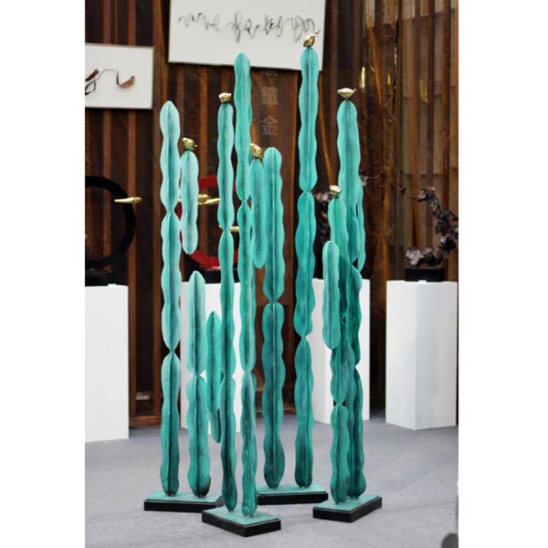 鐵藝漆飾抽象仙人樹雕塑工藝裝飾品黃銅鳥