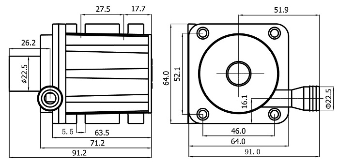 | 2 | 水泵出水口外徑 | 22.5mm |