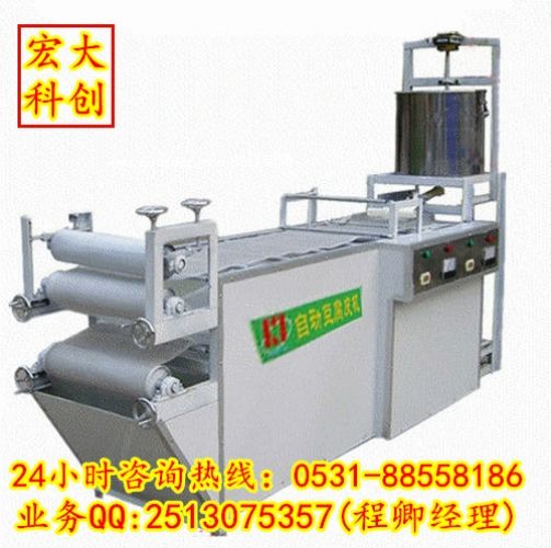 (4)科創(chuàng)小型豆腐皮機廠家的生產(chǎn)豆腐皮設(shè)備、全自動豆腐皮機器的自動剝皮(解包)機:雙扒皮機又稱(一次剝皮機),本機完全代替了人工扒皮。操作方便,不爛皮,一次扒皮機是手工扒皮的8-10倍,全面提升了扒皮速度。我工廠有設(shè)備的現(xiàn)場生產(chǎn)線,歡迎新老客戶來我們廠實地參觀考察