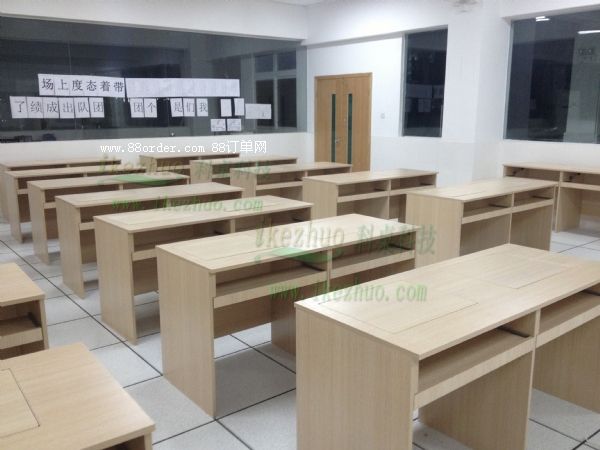 科桌翻轉(zhuǎn)電腦桌主要應(yīng)用于各種大型會(huì)議室,學(xué)術(shù)報(bào)告廳,計(jì)算機(jī)教室,多媒體教室、多媒體會(huì)議室、多媒體電子教室、多媒體電教室、機(jī)房、培訓(xùn)中心,展廳內(nèi)及多功能會(huì)議廳等。普通教室與計(jì)算機(jī)教室模式相互切換快速,不阻礙老師與學(xué)生之間目光交流當(dāng)需要使用顯示器時(shí)輕按前端桌面板隱藏在桌子內(nèi)部的顯示器會(huì)自動(dòng)從桌子下面升到桌面翻轉(zhuǎn)到合適角度。當(dāng)不使用顯示器時(shí),可手動(dòng)按下顯示器翻蓋面板至桌面平整,顯示器自動(dòng)鎖住隱藏在桌子內(nèi)與桌面保持平整一致。起到防塵,防盜,保持桌面平整美觀。使用方便,手動(dòng)控制,翻轉(zhuǎn)自如。