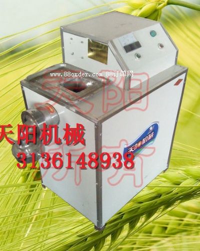 天陽(yáng)玉米面條機(jī)從原料到成品面條一次成形成熟。制出的面條外表光滑、顏色金黃,柔軟可口、久煮不糊,食用時(shí)有濃郁的玉米芳香口味,保留原糧的特有營(yíng)養(yǎng)成分和微量元素,解決了其他機(jī)器生產(chǎn)玉米面條口感粗糙,水煮易斷,食用澀硬的難題,蒸、煮、炒、涮皆可,加工拌料時(shí)加入奶粉、蛋粉、蔬菜汁、蔬菜粉、山藥等各種保健原料更能提升營(yíng)養(yǎng)價(jià)值和風(fēng)味。天陽(yáng)玉米面條機(jī)既可現(xiàn)做現(xiàn)賣,也可制作掛面,進(jìn)入超市,還可開辦玉米快餐面加工廠,是廚房,飯店,面條加工戶的理想食品加工設(shè)備。天陽(yáng)玉米面條機(jī)tyg-a時(shí)產(chǎn)20-30公斤,動(dòng)力2.2kw(220v),價(jià)格2300元,tyg-c型時(shí)產(chǎn)60-80公斤,動(dòng)力7.5kw,價(jià)格3600元,tyg-d型時(shí)產(chǎn)120-150公斤,動(dòng)力7.5-11kw,價(jià)格7580元(機(jī)器價(jià)格不含電機(jī)和運(yùn)費(fèi))。另可根據(jù)客戶需要配備玉米脫皮機(jī),磨粉機(jī),拌面機(jī)等。