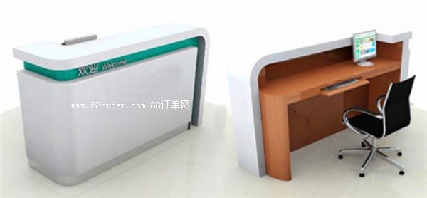 材質(zhì):白色人造石臺面,配農(nóng)行綠色亞克力裝飾邊,白色烤漆臺身,淺灰色免漆板