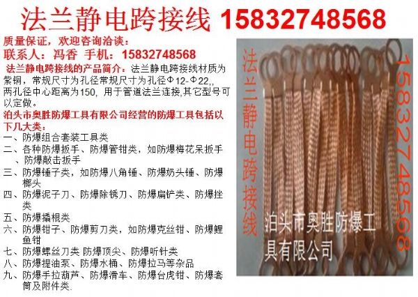 泊頭市奧勝防爆工具有限公司專業(yè)生產(chǎn)各種黑龍江asex-ztznbj智能語音報警型防爆人體靜電釋放器,特種工具,組合工具,防爆人體靜電釋放器,靜電接地報警器,法蘭靜電連接片,法蘭靜電跨接線,防爆組合工具,防爆扳手,防爆梅花扳手,防爆呆扳手,防爆錘,防爆鉗,防爆漏斗,防爆油壺,防爆油桶,防爆石油工具組合,防爆天然氣工具,防爆防靜電安全帶,防爆計量工具,防爆棧橋工具,防爆無火花組合工具,防爆配電室組合工具,防爆銅工具組合,防爆維修組合工具,防爆檢維修工具組合,防爆電工工具組合,黑龍江asex-ztznbj智能語音報警型防爆人體靜電釋放器等以及各種石油石化組合專用工具,加油站天然氣專用工具,搶險工具,各種環(huán)境作業(yè)工具。