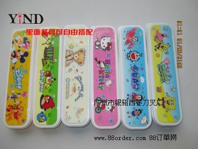 新開發(fā)奇特餐具 兒童卡通 海綿寶寶勺筷套裝 熊盒套裝