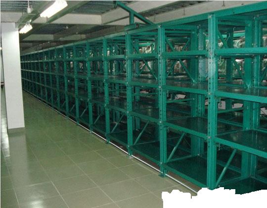 模具架類別 1. 模具架分為:a.標準型;b.帶天車型;c.重型;d.全開式;e.滑板式;f.伸收式. 2. 可根據(jù)客戶要求非標訂做. 模具架技術參數(shù) 規(guī)格:l3100*d600*h2000mm(3格*4層=12抽板) 無限長 承重:800-1000kg/每抽屜板,整體承重可達到9.6-12t 材質:立柱采用10#槽鋼;拉桿采為40*40方通;抽板底架采用50*50角鐵;面板為厚2.5mm鋼板;滑槽采用4mm鋼板折槽;軸承采用進口6404型 拉出:抽屜板可拉出65% 顏色:環(huán)保綠(默認) 備注:標準承重型模具架長度不是只能做到3100mm,只是一般做成3格(l3100mm)為一組模具架,實際使用中可以做到任意長度,這個過程勿需加多人工、材料或是工藝,只是簡單的把做好的立柱一個接一個的排列連接起來即可。