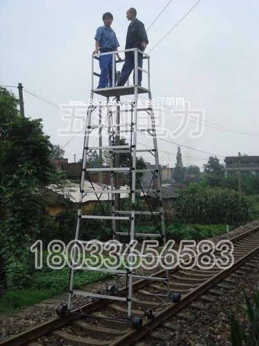 鋁合金搶修支柱 接觸網(wǎng)梯車怎么樣 梯車批發(fā)實(shí)用新型公開了一種穩(wěn)定性強(qiáng),具有防傾倒,防靜電等多種功能的電氣化專用梯車。該專用梯車在頂部操作臺(tái)的兩翼可以打開放平作為平臺(tái)使用,平臺(tái)下部設(shè)有支撐;該專用梯車增加了標(biāo)定裝置,可以準(zhǔn)確便捷的測(cè)量導(dǎo)高,拉出值;該專用梯車還增設(shè)了防靜電裝置,在接觸網(wǎng)調(diào)整過程中,尤其是電氣化接觸網(wǎng)改造項(xiàng)目或者運(yùn)營(yíng)檢修過程中使用更安全;該專用梯車增加了手動(dòng)制動(dòng)裝置,打破了完全靠人力扶持的現(xiàn)狀;另外鋁合金搶修支柱 接觸網(wǎng)梯車怎么樣 梯車批發(fā)采用鋁合金與鋼材材料相結(jié)合的方式,重心低,重量輕,穩(wěn)定性能好。 鋼制梯車
