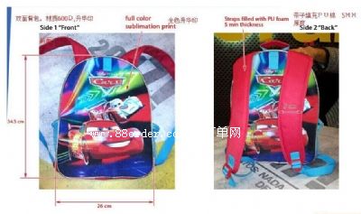 1、背包: 18萬,2款,每款9萬 材料600d, 規(guī)格34.5*26cm*11,5cm(側(cè)寬) 雙面全彩印帶金銀蔥,雙面拉鏈,7彩股條包邊; 肩帶寬5cm, 5mm厚珍珠棉填充 側(cè)面單色印花, 雙側(cè)網(wǎng), 中間開縫肩帶逢正中, 包內(nèi)全里布170t 2、午餐包: 數(shù)量材料同背包, 規(guī)格: 高16cm*底寬18cm, 包身2色絲印如圖, 前片全彩印花金銀蔥, 邊側(cè)七彩股條包邊, 定制浮雕造型圖案拉片, 底袋拉鏈45cm長度 側(cè)袋拉鏈長35cm; 里布170t; 包裝: 以上同款設(shè)計背包+午餐每套裝一塑料袋包裝, 入出口紙箱!訂單年底前下單, 4月底出貨, 我司目標(biāo)價格含稅寧波每套16-17元,