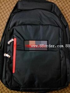 雙肩電腦包: 數(shù)量:1800個 尺寸:32cm長*19cm寬*46.5cm高 材料:面料600d古治尼龍,里布210d 黑色,有三個大口袋 1.第一格最大,背包內(nèi)部有電腦隔層,能放得下一部15.6英寸的手提電腦,隔層用6mm厚珍珠棉,用10號雙頭拉鏈 2.第二格內(nèi)也有珍珠棉隔層可放手提電腦; 3.第三格內(nèi)有一個口袋放筆記本(尺寸:15*12cm)和三個筆袋(尺寸:2*12cm) 4.左右兩側(cè)有松緊帶的放水壺網(wǎng)袋; 5.正面有一個7色刺繡,刺繡尺寸:12*7cm