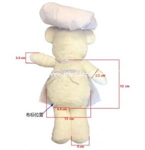 毛絨玩具廚師熊。數(shù)量100 000個。3個尺寸分別是: 站高 25cm ,水晶超柔面料。 站高34cm,pv 絨。 站高40cm,面料小兔毛。 尋求合適工廠。