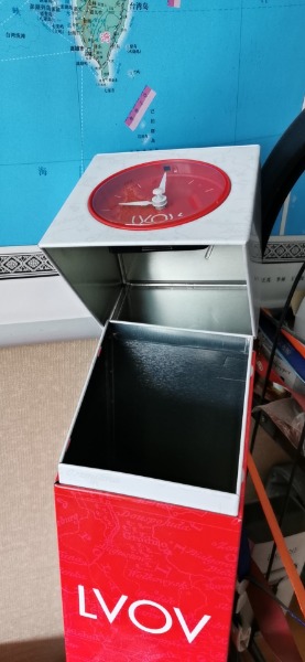 馬口鐵鐵盒,尺寸高46.1厘米,邊長9.5厘米,厚度0.28厘米。(鏤空的是效果圖)