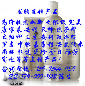 陳生現(xiàn)大量收購?fù)昝赖谋ian品營養(yǎng)食品,個人清潔用品,家居日用品系列,瑪麗艷美容護(hù)膚系列。收購?fù)昝捞J薈膠,營養(yǎng)餐,蘆薈礦物晶,牙膏,高纖樂沖劑,紅棗膠原肽沙棘汁;厥諊涞幕瘖y品潤妍系列 , 國珍化妝品煥顏系列 , 國珍化妝品和顏系列 , 國珍化妝品清顏系列。