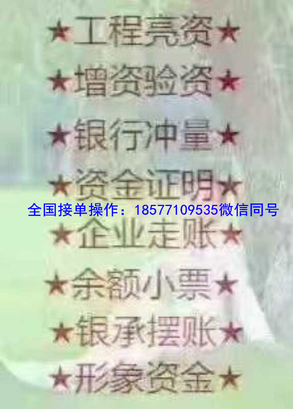 您接工程、談項(xiàng)目、投標(biāo)需要啟動(dòng)資金嗎?您批地、批車(chē)、批銅、批油需要顯示資金實(shí)力嗎?本公司專(zhuān)業(yè)提供:擺賬亮資、網(wǎng)銀顯帳、資金證明、余額小票、流水對(duì)賬單!形象資金(企業(yè)上盤(pán)增值,激活民族沉淀資金)一次合作,終身朋友,歡迎垂詢(xún)18577109535微信同號(hào)
